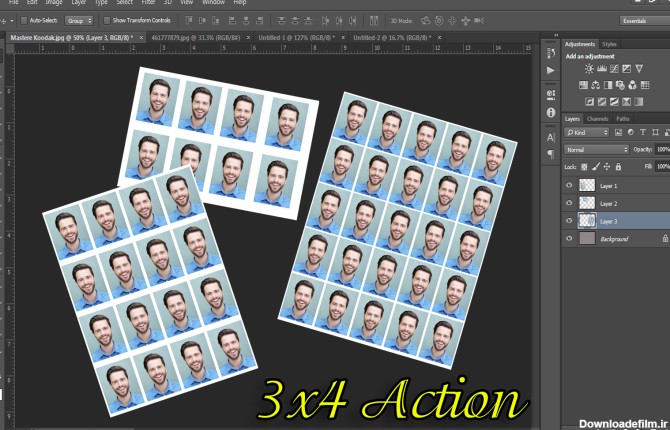 اکشن فتوشاپ با قابلیت سرعتبخشی به امر چینش عکس 3x4 در نرم افزار فتوشاپ.
