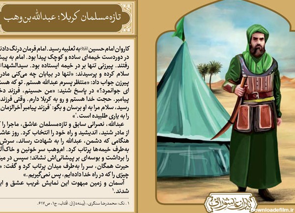 معرفی کوتاه شخصیت عبدالله بن وهب(عکس نوشته و پوستر) (با عنوان: تازه مسلمان کربلا: عبدالله بن وهب)