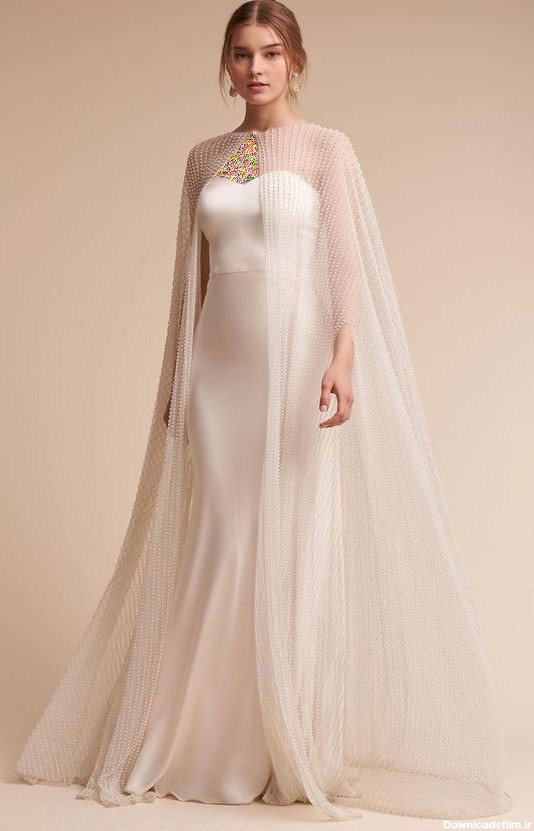 کت آستین دار حریر روی لباس عروس دکلته,عکس مدلهای کت آستین دار حریر برای روی لباس عروس دکلته,کت آستین بلند توری,کت یقه هفت,کت آستین گیپور دانتل لباس عروس باز