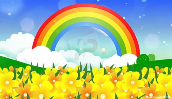 دانلود فوتیج کارتونی منظره و رنگین کمان مناسب برای استفاده بعنوان پس زمینه تدوین فیلم های مرتبط با کودکان