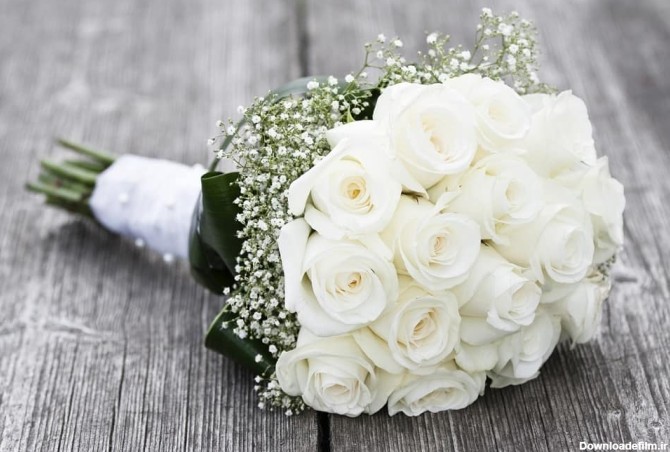 عکس دسته گل رز سفید عروس