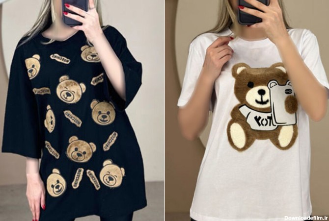 مدل تیشرت تدی دخترانه جدید ۱۴۰۲ ⭐️ جدیدترین مدل تیشرت طرح خرس تدی دخترانه شیک 2023 ؛ بهترین مدل تی شرت خرس تدی برجسته دخترانه سفید و مشکی