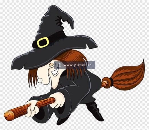 فایل ترانسپرنت و دوربری شده شخصیت کارتونی جادوگر سوار بر جارو . ارائه شده با پسوند png