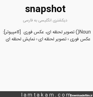 (Noun) تصویر لحظه ای، عکس فوری [کامپیوتر]: عکس فوری ؛ تصویر لحظه ای ؛ نمایش لحظه ای