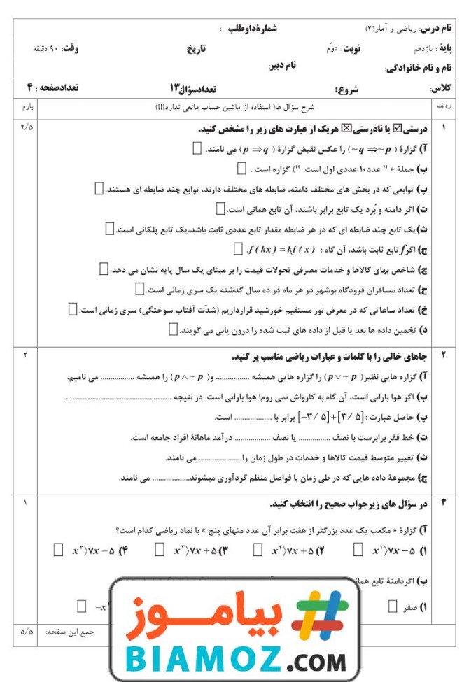 تدریس عکس نقیض ریاضی یازدهم انسانی