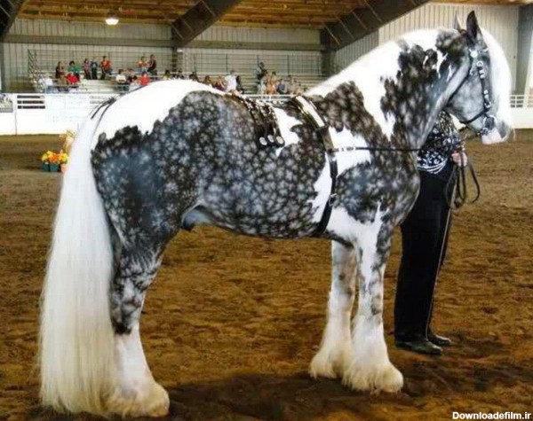 یکی از زیباترین اسب های جهان با بدنی بسیار زیبا از خال های خاکستری رنگ