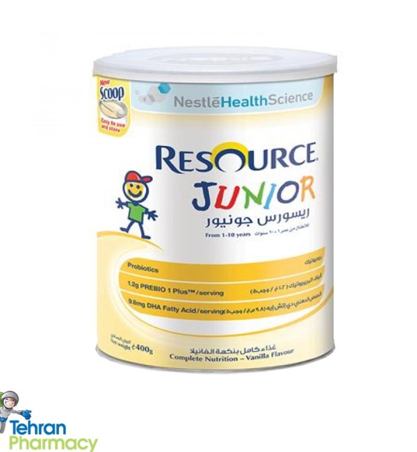 مکمل غذایی ریسورس جونیور نستله غذایی کامل جهت تامین کلیه نیازهای تغذیهای (ریز مغذی و درشت مغذی) مناسب برای کودکان 1 الی 10 سال است که باعث ارتقای عملکرد طبیعی سیستم گوارشی و بهبود سیستم ایمنی بدن میشود.