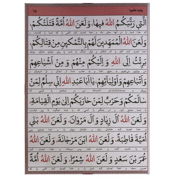 کتاب زیارت عاشورا ، دعای علقمه و دعای توسل (درشت خط و همراه با ترجمه) مترجم مهدی الهی قمشه ای انتشارات همگرا. خط کامپیوتری با ترجه فارسی و علامت وقف.
