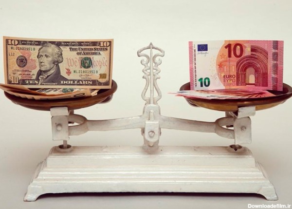 همشهری آنلاین: یک عکس تصویرسازی شده اسکناسهای دلار آمریکا و یورو را در ۱۱ مارس (۲۰ اسفند) ۲۰۱۵ روی یک ترازو نشان میدهد.