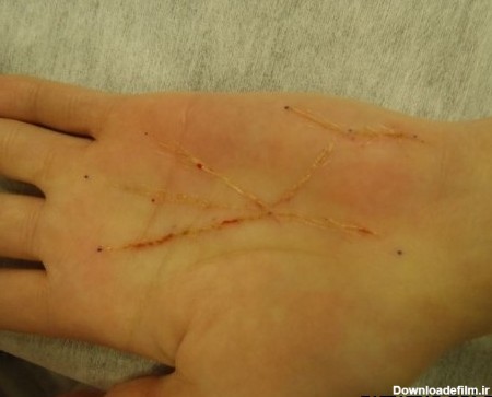 عکس دست دختر که بخیه خورده