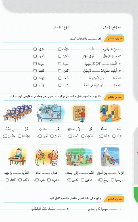 ( حل تشریحی کامل و رایگان تمرین های درس عربی هفتم) + پاسخ تمرین 2 و3 درس اول عربی هفتم بخش دوم