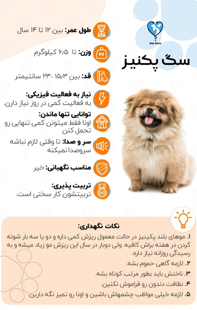 پیکینیز سگ بسیار دوست داشتنی و عروسکی است که شخصیت آرام و با وقاری دارد و زیاد اهل شیطنت نیست. در ادامه ی مطلب همه چیز در مورد سگ های این نژاد گفته شده است.