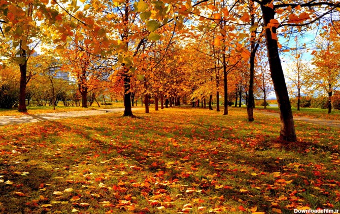 عکس با کیفیت و و زیبا از درختان و برگ های پاییزی و رنگارنگ مناسب برای استفاده در طراحی های فصل پاییز