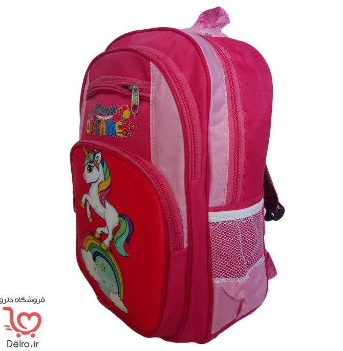 خرید کیف مدرسه دخترانه کارتون اسب تک شاخ و قیمت کوله پشتی دبستانی در سایت دلرو 👧🏻 کوله پشتی دانش آموزان دختر ابتدایی با طرح انیمیشن یونیکورن