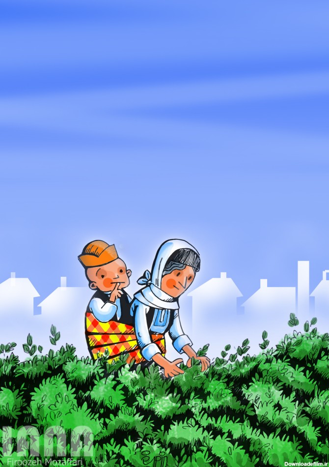 طرح کارتونی و گرافیکی خانواده شاد روستایی در مزرعه مشغول زراعت و کاشت . قابل ویرایش در نرم افزار ادوب ایلستریتور و قابل اجرا در کلیه نرم افزارهای گرافیکی