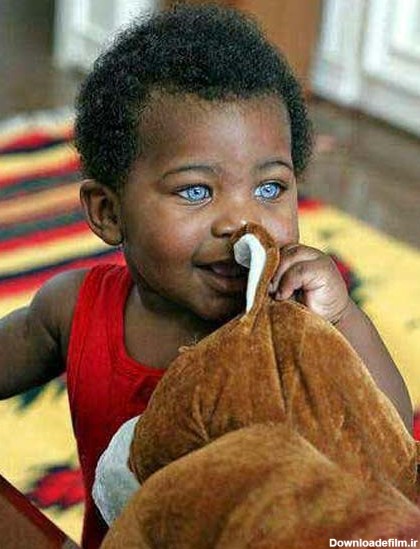 این پسر بچه زیبای سیاه پوست زیباترین چشمان دنیا یعنی چشمانی به رنگ آبی آسمان را دارد.