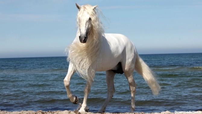 تصویر با کیفیت از اسب سفید در دریا با فرمت jpg