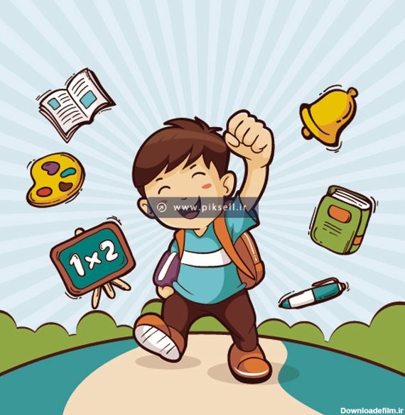 دانلود شخصیت کارتونی پسر بچه درحال رفتن به مدرسه . با ژیوانو به سادگی طراحی کن!