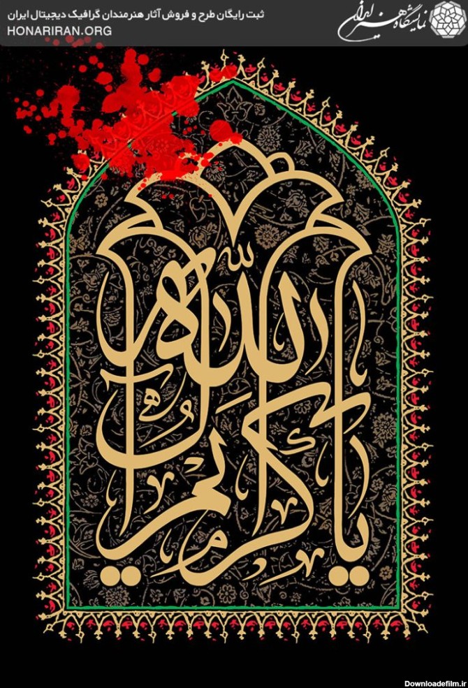 طرح لایه باز یا کریم الله به شکل گل لاله به رنگ طلایی در پس زمینه مشکی دانلود طرح لایه باز یا کریم الله به شکل گل لاله به رنگ طلایی و سبز در پس زمینه مشکی و خون در کنار قاب طرح آماده، عکس و تصویر با کیفیت یا کریم الله به شکل گل لاله به رنگ طلایی و سبز زیبا در پس زمینه مشکی و خون در کنار قاب