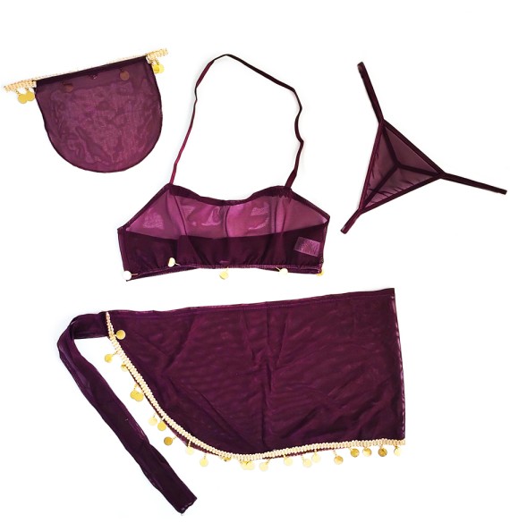 لباس فانتزی عربی Wella کد WL0017 3 تکه(با روبنده، سوتین و شورت متصل به دامن) سایز: Free(38-42) قد دامن: 82 سانتیمتر عرض کمر دامن: 37 سانتیمتر(حدود 15