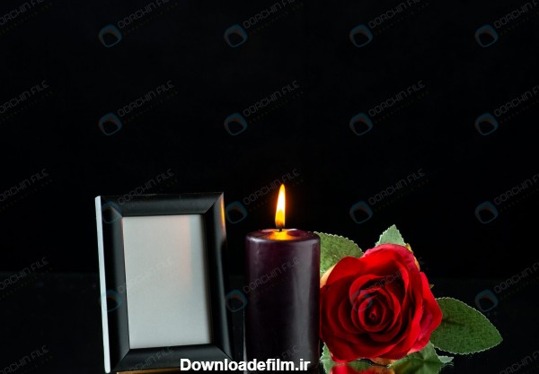 قاب عکس مشکی با گل رز و شمع عکس استوک قاب عکس، گل رز و شمع در پس زمینه مشکی