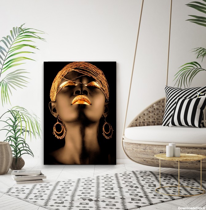 کاغذ دیواری سه بعدی پوستر سه بعدی دختر سیاه پوست با رژ طلایی - چاپ پوستر و کاغذ دیواری سه بعدی با استفاده از کاغذ نانوون قابل شستشو