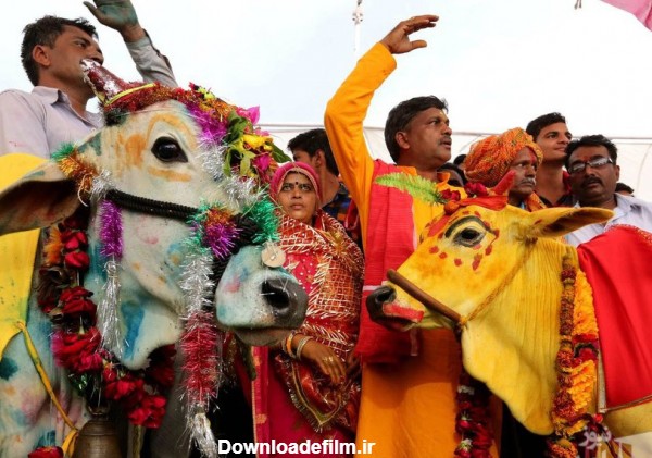 اهالی روستایی در هند مراسم عروسی دو گاو را بر اساس خرافات خود برگزار کردند.
