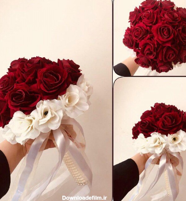 گالری عکس مدل های جدید دسته گل عروس با رز قرمز و سفید صورتی