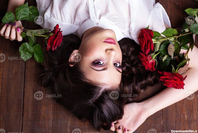 دانلود عکس دختر نوجوان زیبا با آرایش زیبا و گل رز قرمز اوپیک مرجع دانلود وکتور و عکس و طرح کاغذ دیواری و طرح تابلو