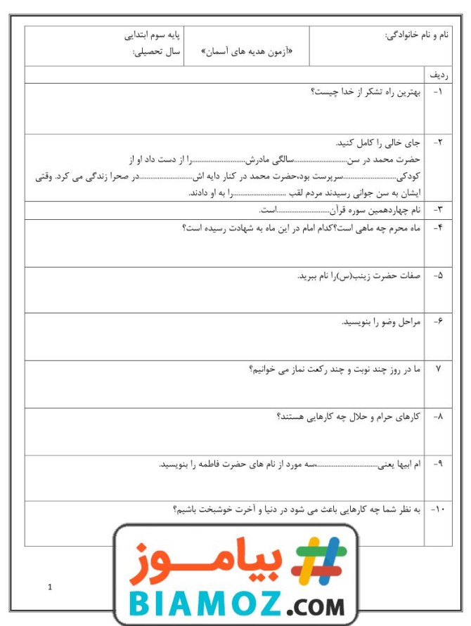 دانلود سوالات متن هدیه های آسمانی سوم ابتدایی سوال متن هدیه سوم فرمت PDF + لینک دانلود مستقیم قرار گرفت نام درس : هدیه های آسمانی | موضوع : سوالات متن |