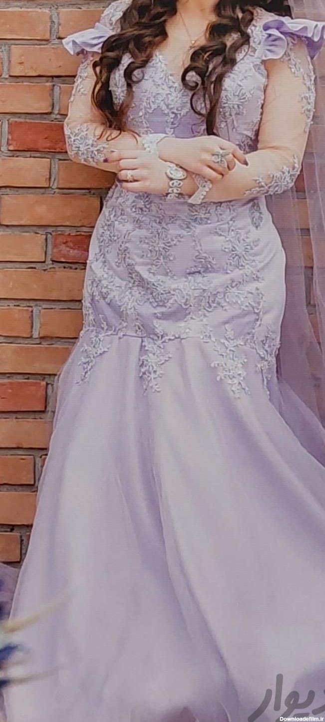 لباس زیبای جشن نامزدی با یقه قایقی و رنگ یاسی