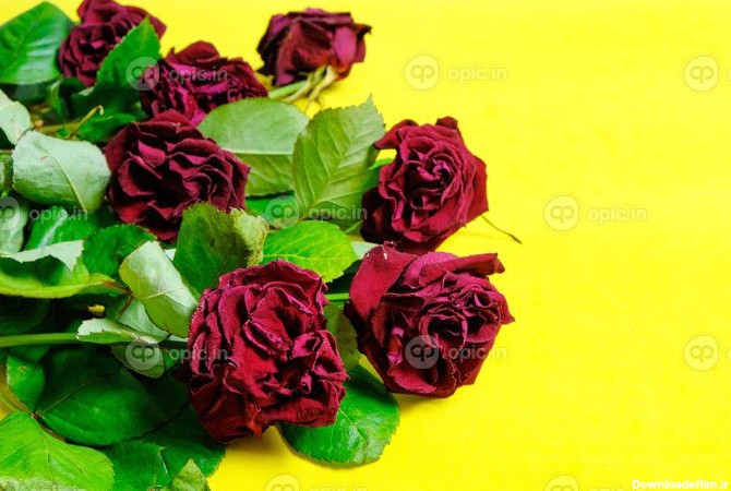 دانلود دسته گل رز قرمز پژمرده در پس زمینه زرد اوپیک مرجع دانلود وکتور و عکس و طرح کاغذ دیواری و طرح تابلو