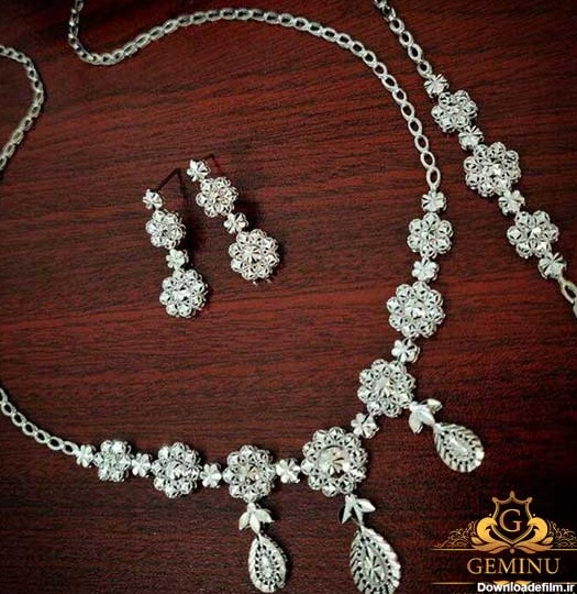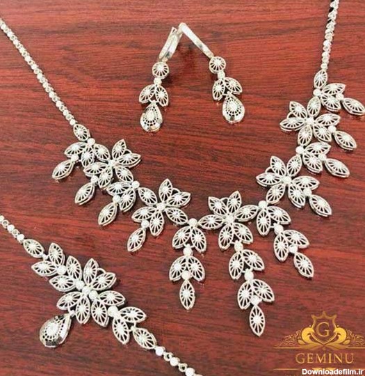 سرویس طلا سفید عروس با نگین الماس تراش برلیان به وزن 65 گرم طلای 18 عیار و برلیان