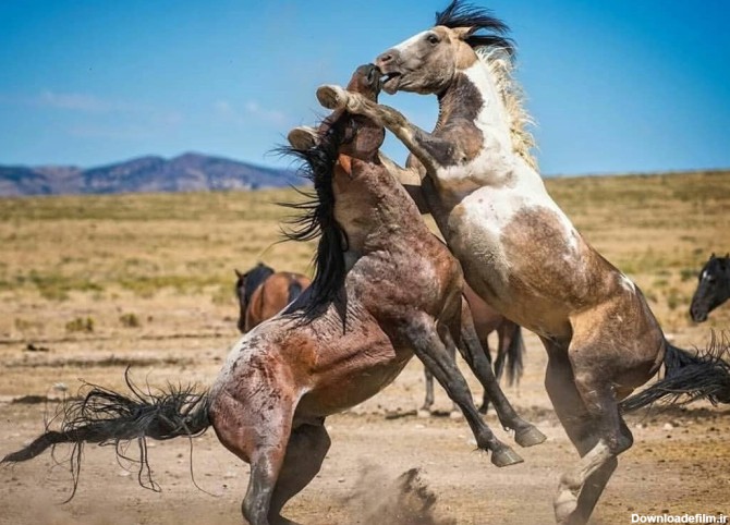اسب های وحشی به ندرت با یکدیگر گلاویز می شوند و بسیاری اوقات با هم تعامل دارند اما گاهی اوقات اتفاقات غیرمنتظره رخ می دهد.