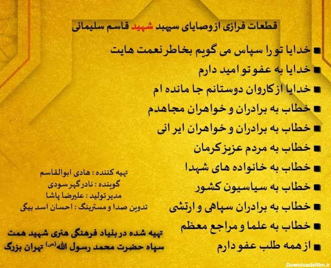 عکس وصیت نامه ی شهید حاج قاسم سلیمانی