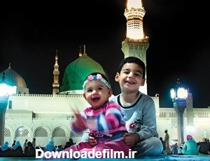 پوستر حرم حضرت محمد (ص) ، پوستر بزرگ و با کیفیت از حرم حضرت محمد (ص) با گنبد سبز حرم و گل دسته ها، زیباترین پوستر های مذهبی و اسلامی
