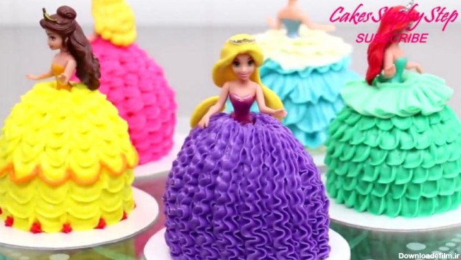 اموزش ویدیویی طرز تهیه کیک های دخترانه با تم پرنسس های دیزنی که ویدیو ان در نشرین در کانال ایده های تزیین کیک منتشر شده است با ما در نشرین