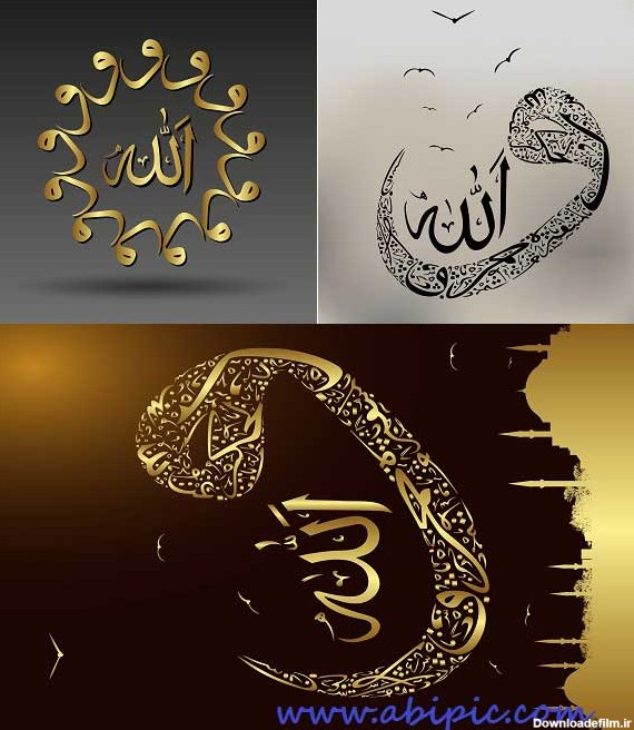 آبی گرافیک | دانلود آموزش ،گرافیک و عکس - دانلود 3 طرح وکتور خوشنویسی نام مقدس الله Allah Calligraphy