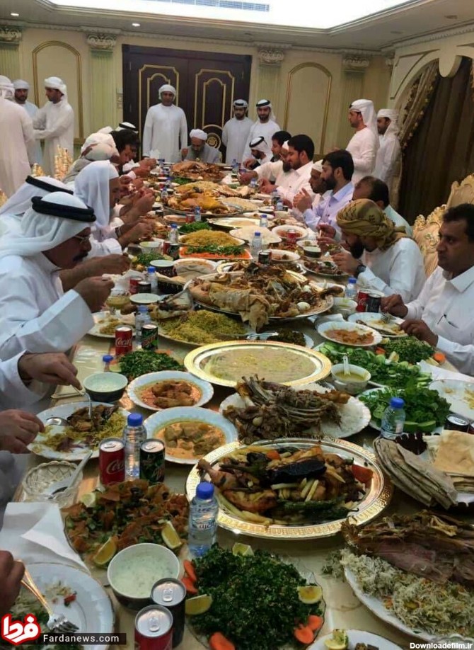 عکس زیر سفره مجلل سعودی ها را برای مولوی عبدالحمید، امام جمعه زاهدان، نشان میدهد.