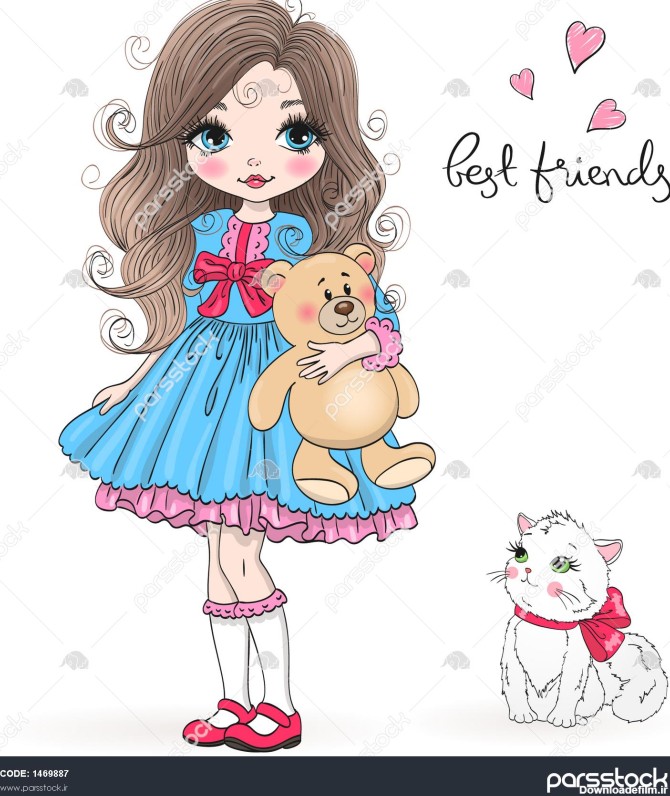 دست دختر ناز شاهزاده خانم زیبا زیبا با خرس عروسکی و گربه کشیده شده است تصویر برداری - بزرگترین مرجع خرید و فروش عکس و طرح لایه باز با کیفیت بالا در ایران در پارس استاک.