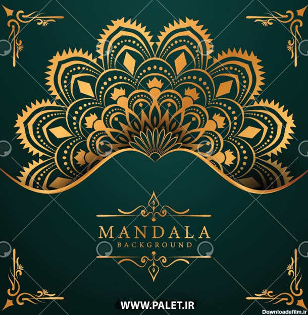 بک گراند سبز تیره با طرح ماندالا وکتور اسلیمی که با طرح های لاکچری طلایی طراحی شده است و جذابیت بسیار زیبایی دارد این طرح های اسلیمی