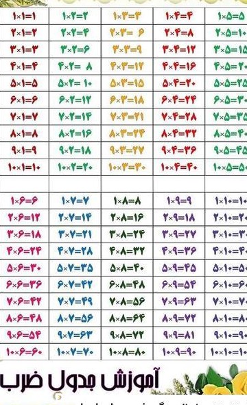 جدول ضرب کلاس سوم دبستان ⭐ جدول ضرب کلاس سوم ابتدایی ، مجموعه تصاویر برای دانلود و استفاده در تلگرام ، واتساپ و اینستاگرام با کیفیت عالی و رایگان.