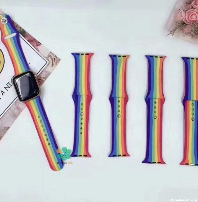 خرید بند سیلیکونی ساعت اپل واچ Apple Watch 38/40mm مدل رنگین کمان - ضدتعریق، مقاوم و باکیفیت، رنگبندی جذاب، نصب اسان، شیک