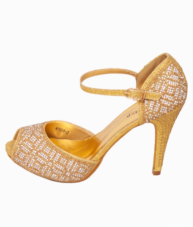 کفش مجلسی طلایی زنانه با نگین های سفید
