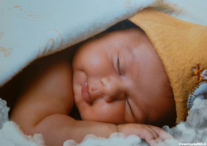 دانلود تصویر با کیفیت از نوزاد دختر خوابیده با لباس صورتی