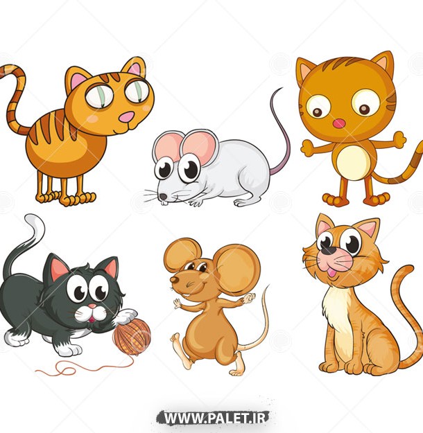 وکتور کارتونی گربه و موش زیبا مجموعه وکتور کارتونی جذاب که با طرح های حیوانات گرافیکی طراحی شده است و با جذابیت زیادی می باشد این طرح های کارتونی جذاب