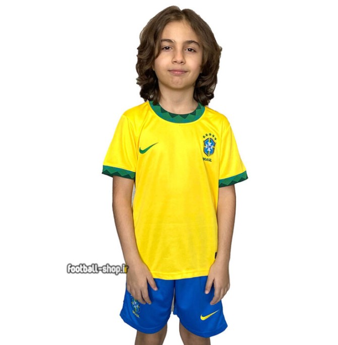 لباس فوتبال ارزان اریجینال درجه یک لباس و شورت اول بسیار زیبای 2022 بچگانه برزیل با قیمت ارزان: فول سایز بچگانه کیفیت لباس:اورجینال گرید یک تایلندی +A