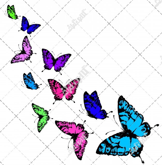 دانلود تصویر با کیفیت پروانه های رنگارنگ در پس زمینه سفیدپروانه ، رنگارنگ ، بال های پروانه ، پروانه با بال های رنگی ، بال های رنگارنگ پروانه