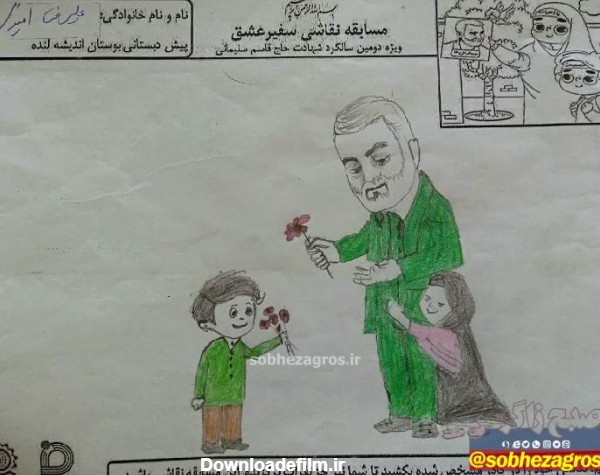 نقاشی کودکان ه در مورد سردار حاج قاسم سلیمانی به مناسبت سالگرد شهادت سردار سلیمانی در ادامه مجموعه ای از نقاشی در مورد سردار دلها حاج قاسم سلیمانی ، نقاشی در مورد حاج قاسم سلیمانی برای مسابقه، نقاشی سردار سلیمانی آسان ، نقاشی کودکانه درباره سردار سلیمانی و متن زیبا برای سالگرد شهادت سردار سلیمانی را