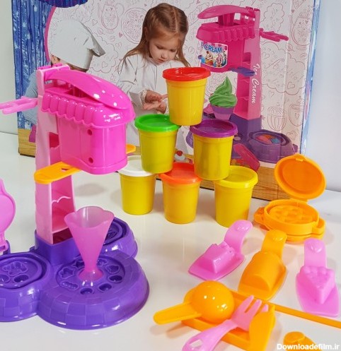 اسباب بازی بستنی ساز کودک: جنس پلاستیک باکیفیت، شامل دستگاه بستنی ساز، خمیر بازی، قالب های متنوع، کارد-چنگال، قیف و... خرید از طریق سایت پیویو